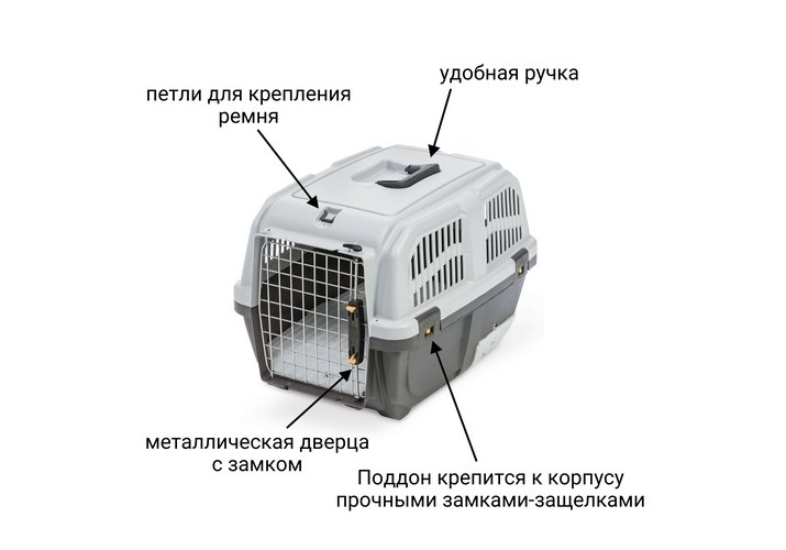 Уникальная переноска MPS SKUDO CAT TRAVEL! Разработана для транспортировки кошек на дальние растояния. В дно переноски встроен выдвижной лоток для наполнителя. Лоток легко вынуть и очистить, при необходимости можно закрыть крышкой. Переноска снабжена отсеком для совочка. Поддон крепится к корпусу современными замками-защелками, дверца оснащена надежным замком, что обеспечивает безопасность питомца во время поездок. Благодаря удобной ручке и петель для крепления ремня владелец питомца может выбирать, как ему удобнее нести переноску. Простая, но надежная конструкция изделия легко собирается и моется. Размер: 60x40x39см. Цвет серый. Максимально допустимый вес животного для данной переноски 20 кг. Вес переноски 2,8кг. Соответствует стандартам ж/д и авиа (багажное отделение) перевозок. СОСТАВ: Полипропилен.