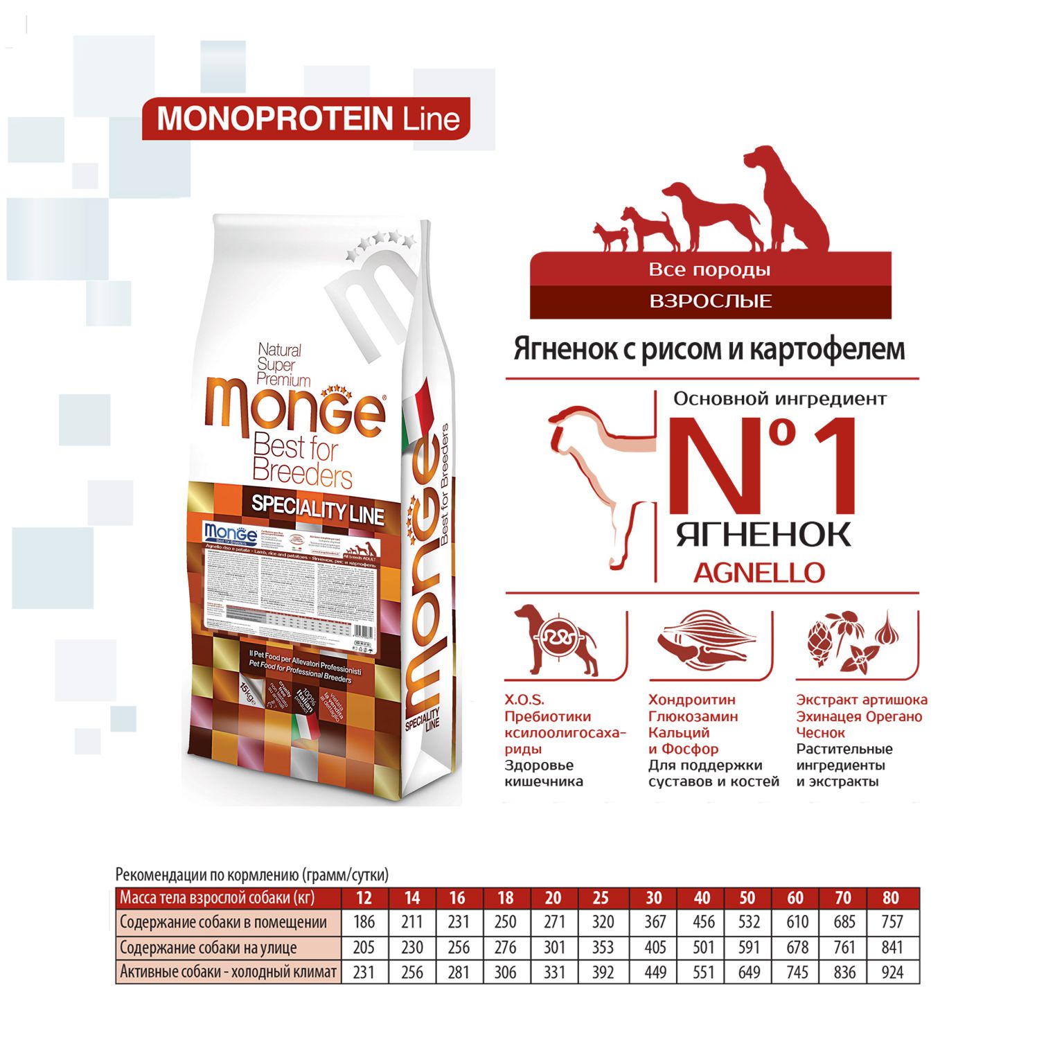 Корм сухой Monge Dog Monoprotein All Breeds Adult Lamb для взрослых собак всех пород, ягненок с рисом, 15 кг