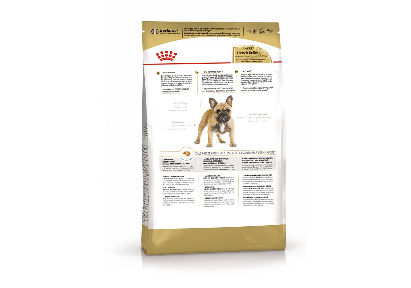 В состав ROYAL CANIN® French Bulldog Adult также входят специальный комплекс питательных веществ, а также жирные кислоты ЭПК и ДГК, способствующие здоровью кожи и шерсти вашего французского бульдога.