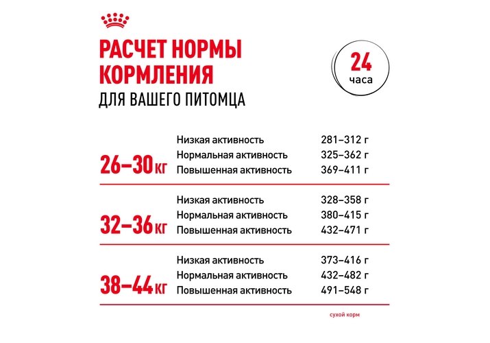 Корм сухой полнорационный для взрослых собак крупных размеров (весом от 26 до 44 кг) в возрасте от 15 месяцев до 5 лет MAXI ADULT (МАКСИ ЭДАЛТ) ROYAL CANIN®, подходящий для собак крупных пород в возрасте от 15/18 месяцев до 5 лет, специально разработан с учетом потребностей в питательных веществах вашей собаки.