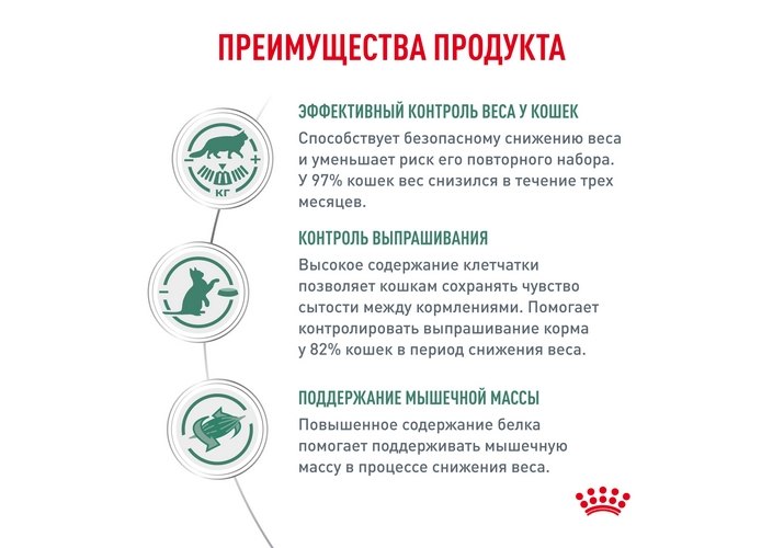 Способствует безопасному снижению веса и уменьшает риск его повторного набора. У 97%(1) кошек вес снизился в течение трех месяцев.