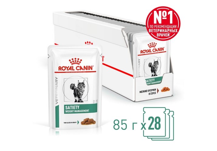 Royal Canin Satiety Weight Management SAT34 Ветеринарный влажный корм (Консервы-Паучи) Роял Канин Сетаети Вейт Менеджмент для кошек Контроль избыточного веса (цена за упаковку) 85г х 28шт
