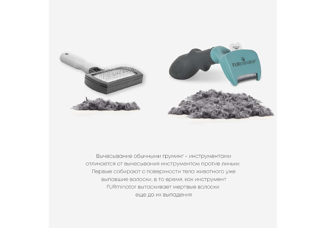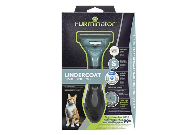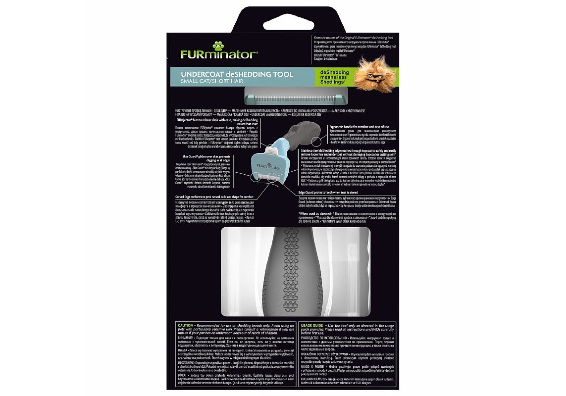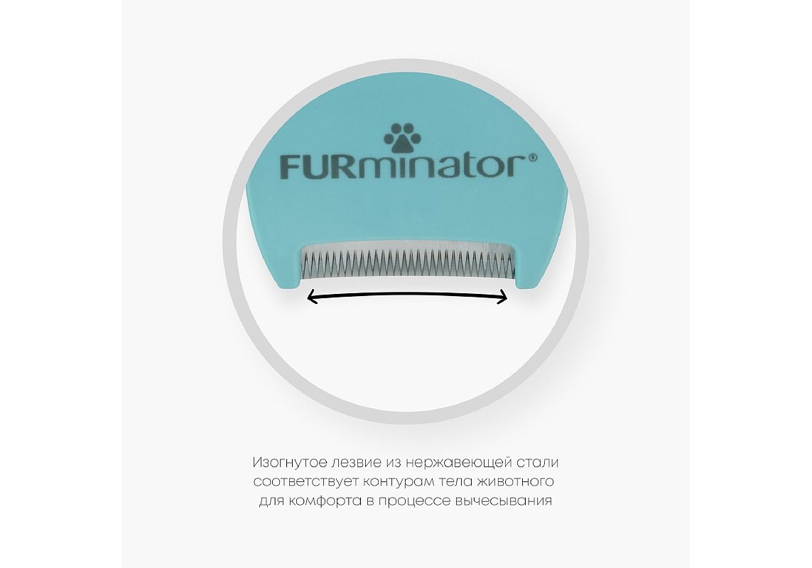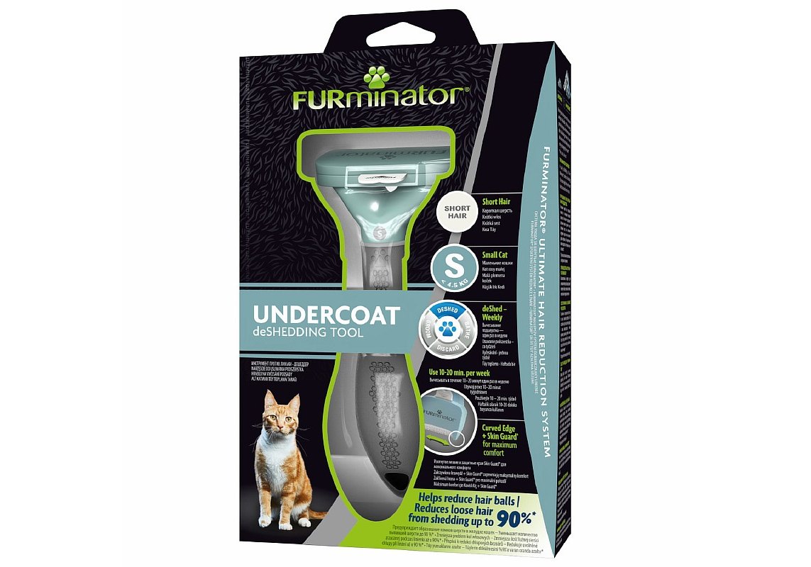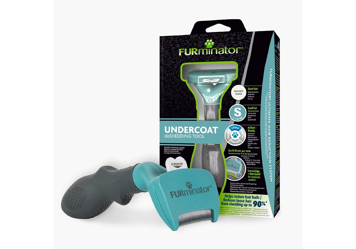 Инструмент FURminator S для маленьких кошек c короткой шерстью. Уникальное лезвие захватывает и вытаскивает мертвые волоски подшерстка до их выпадения, сокращая линьку до 99%. Инструмент экономит ваше время, сохраняет здоровье кожи и шерсти, не повреждает остевой волос и предупреждает образование комков шерсти в желудке кошек. Вы забудете о выпавшей шерсти на полу, одежде и мебели. Кнопка самоочистки легко сбрасывает шерсть с инструмента. Защелкните ее для защиты лезвия в процессе хранения. Защитные края предупреждают давление лезвия на кожу. Инструкция: Вычёсывайте животное, проводя инструментом по направлению роста волос, проникая лезвием вглубь шерсти животного. Не задерживайтесь надолго в одной области. Удалите шерсть с инструмента путём нажатия на кнопку самоочистки. Гарантия на инструмент FURminator – 10 лет!