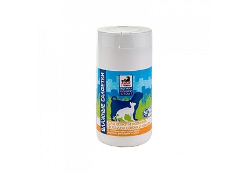 Айда гулять Салфетки влажные для собак и кошек для Кожи и кожных складок 1 банка х 50 шт