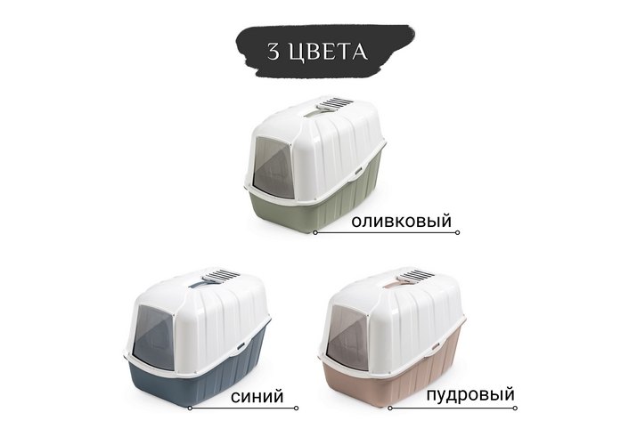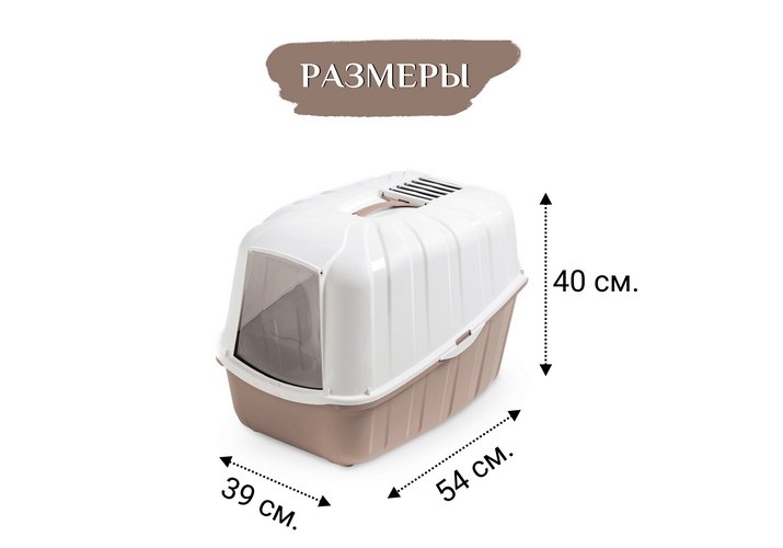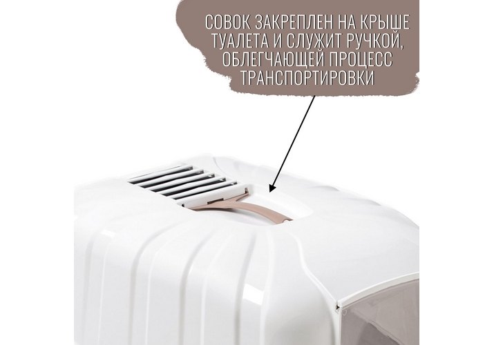 В отличие от обычных лотков био-туалет KOMODA имеет специальный фильтр, который быстро нейтрализует неприятные запахи, дверцу, через которую питомец легко попадает внутрь, а также совок для уборки. Совок закреплен на крыше туалета и служит ручкой, облегчающей процесс транспортировки.