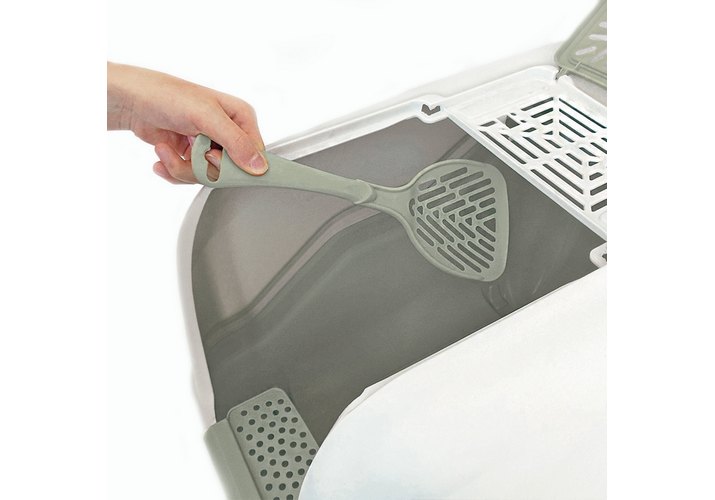 В отличие от обычных лотков био-туалет Netta имеет специальный фильтр, который быстро нейтрализует неприятные запахи, дверцу, через которую питомец легко попадает внутрь, а также совок для уборки. Совок удобно закреплен на внутренней стороне крыши туалета. Удобный отсек на крыше туалета позволяет легко проводить его уборку, а перфорированная ступенька уменьшает разбрасывание наполнителя. Наличие ручки облегчает процесс транспортировки.