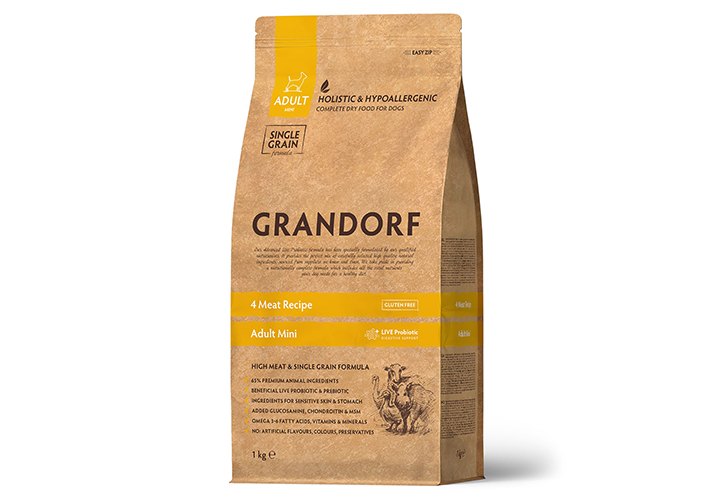 Grandorf Holistic & Hypoallergenic Mini Probiotic 4 meat Сухой корм Грандорф Низкозерновой с Живыми Пробиотиками для собак Мелких пород 4 Мяса с рисом 1 кг