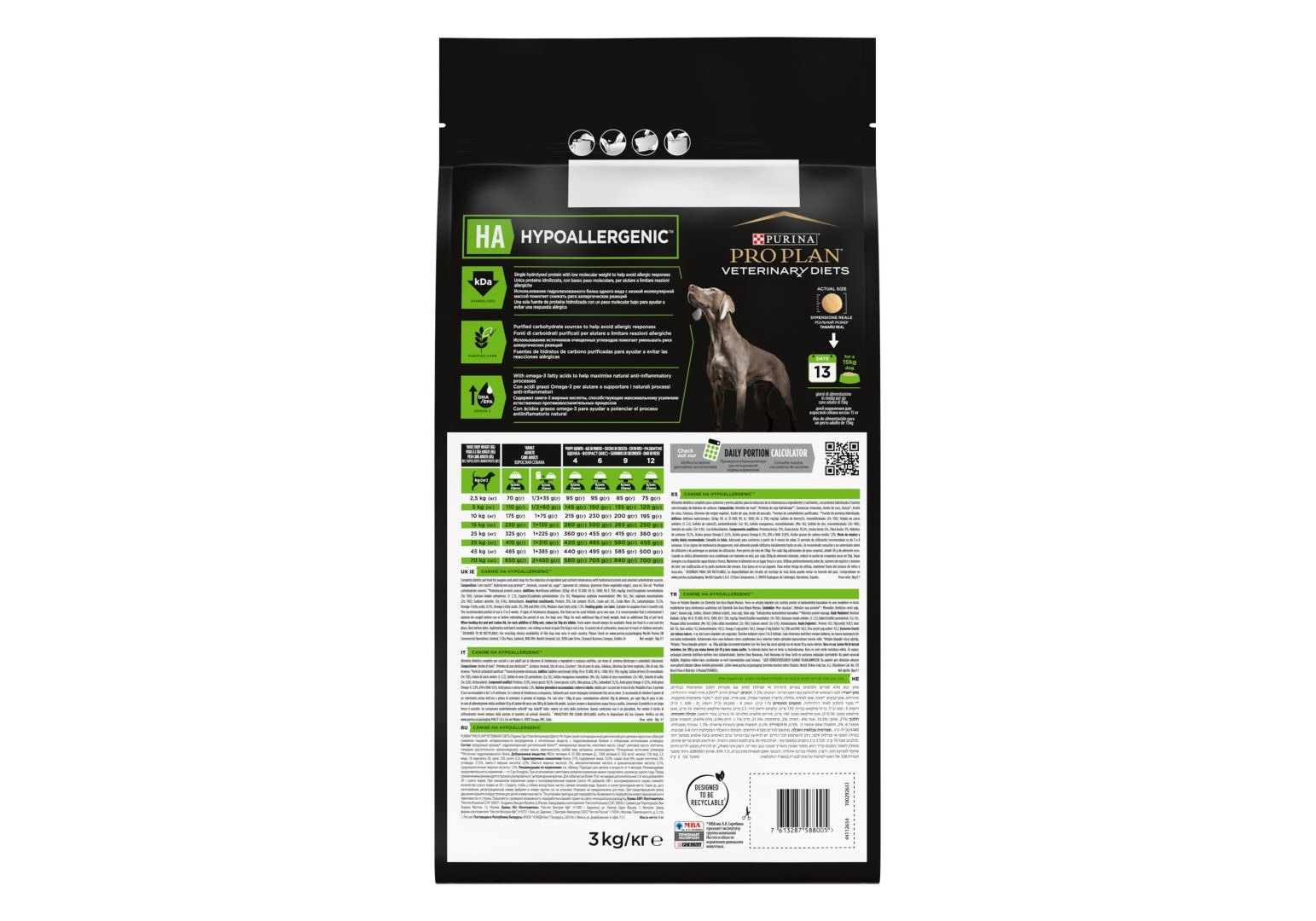 PRO PLAN VETERINARY DIETS HA HYPOALLERGENIC Сухой корм ПРО ПЛАН Ветеринарная диета для взрослых собак для снижения пищевой непереносимости ингредиентов и питательных веществ 3 кг