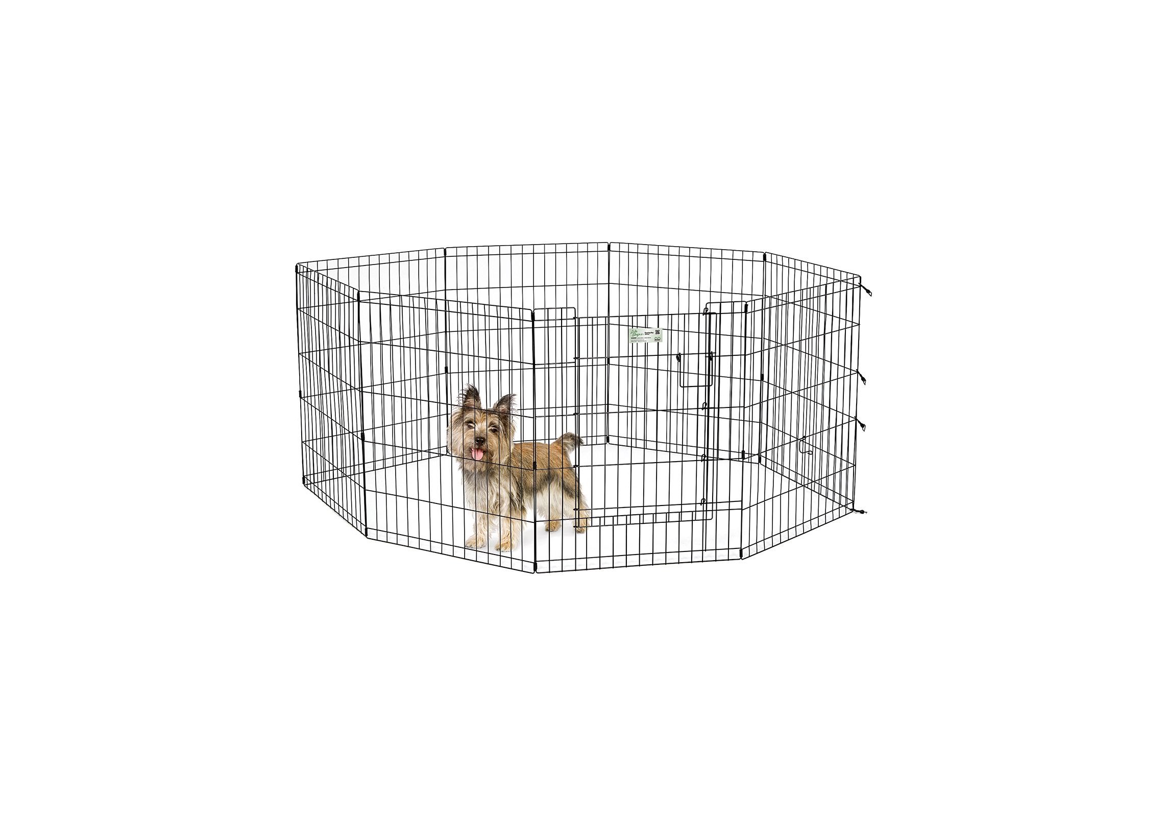 Вольер для животных 8 панелей с дверью для использования в помещении и на улице. Запатентованная дверная система MAXLock повышает безопасность, предоставляя множество точек блокировки по периметру двери. Эргономичная ручка-замок позволяет легко и удобно управлять дверью одним движением, без сгибания коленей. Прочное черное покрытие вольера Electro-Coat обеспечивает долговечную защиту. Вольер легко складывается для удобного хранения и транспортировки, легко собирается, не требуется никаких инструментов или дополнительных деталей. В комплект включены угловые усилители, которые добавляют вес и поддерживают конфигурацию ограждения, они так же могут быть использованы для защиты напольного покрытия, и крепежи, которыми оснащена функциональная безопасная каркасная дверца. Ограниченная площадь 1,5 квадратных метра. Возможные конфигурации вольера: квадрат, прямоугольник, восьмиугольник. Вес 9,3 кг. (10,3 кг с упаковкой). Размер одной панели 61х76h см.