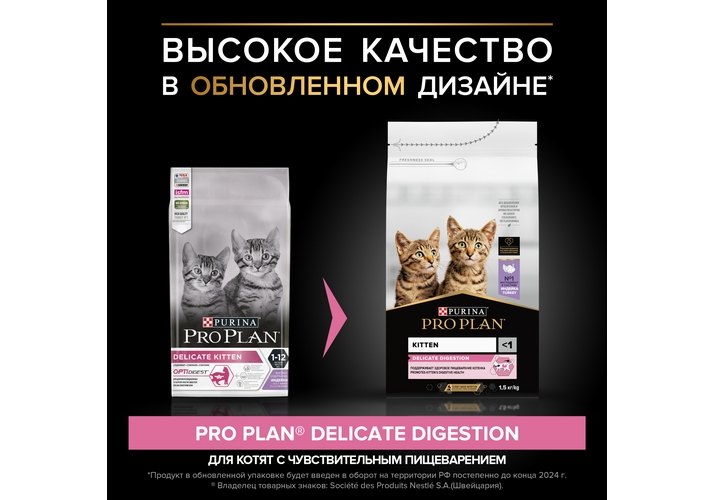 PRO PLAN DELICATE Сухой корм ПРО ПЛАН для котят при чувствительном пищеварении с индейкой 1,5 кг
