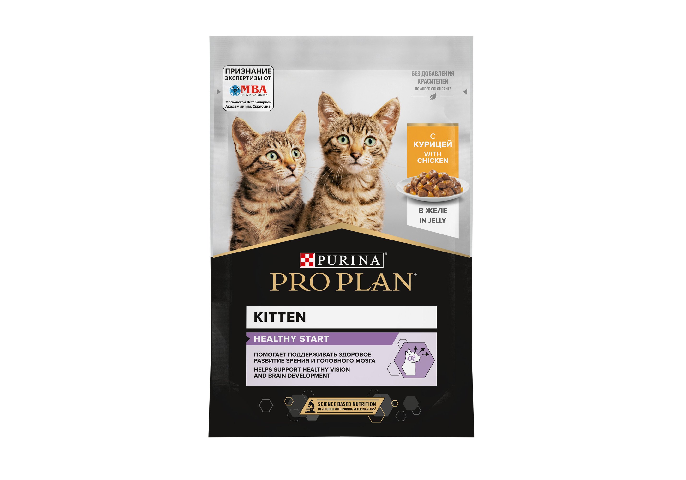 Команда квалифицированных ветеринарных специалистов разработала влажный корм PURINA® PRO PLAN® HEALTHY START для здорового развития котенка. Этот полнорационный корм для кошек с курицей подходит для повседневного кормления питомцев в возрасте до 12 месяцев, а также беременных и кормящих кошек.