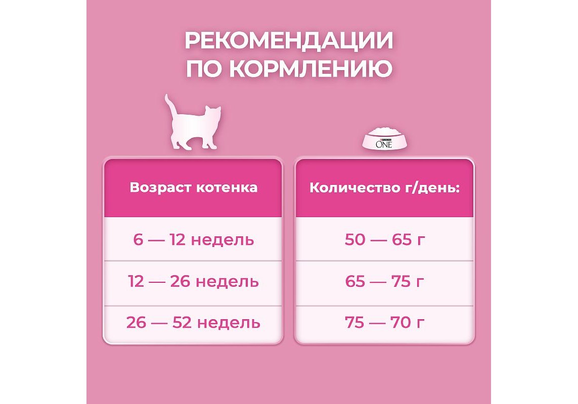 Корм для кошек Purina ONE® (ПУРИНА УАН) — полнорационный корм, разработанный ветеринарами и диетологами Purina специально для котят всех пород в возрасте от 1 до 12 месяцев. Корм также рекомендован беременным и кормящим кошкам.