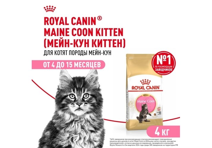 Royal Canin Breed cat Kitten Maine Coon Сухой корм Роял Канин для Котят породы Мэйн Кун в возрасте до 15 месяцев 4 кг