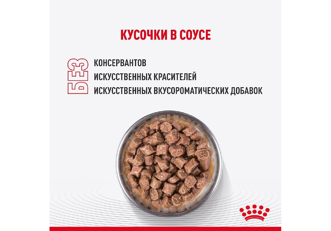 Способствует нормальному пищеварению. Мелкие кусочки в соусе подходят для стерилизованных котят в возрасте от 6 до 12 месяцев.