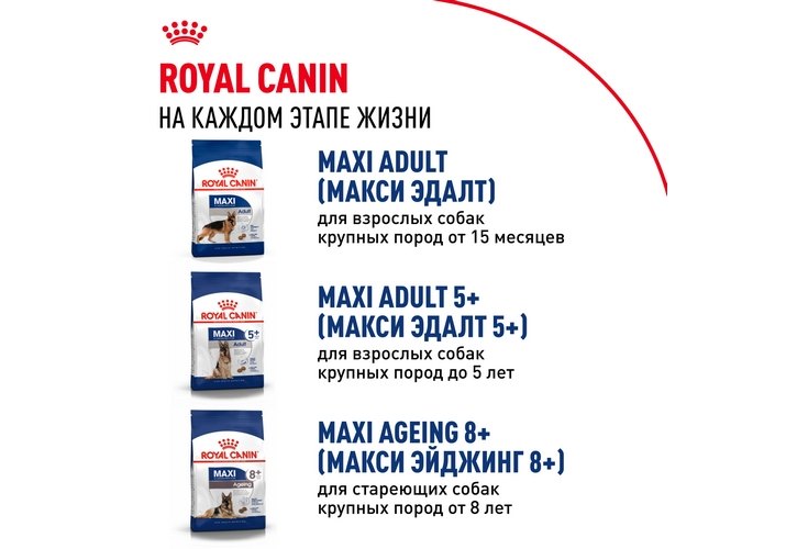 В возрасте 15 месяцев период роста подойдет к завершению, и потребности вашего щенка в питательных веществах изменятся. Ему будет необходим другой рацион, разработанный специально для взрослых собак крупных пород. В этом возрасте вы сможете перевести своего питомца на корм ROYAL CANIN® Maxi Adult (МАКСИ ЭДАЛТ).