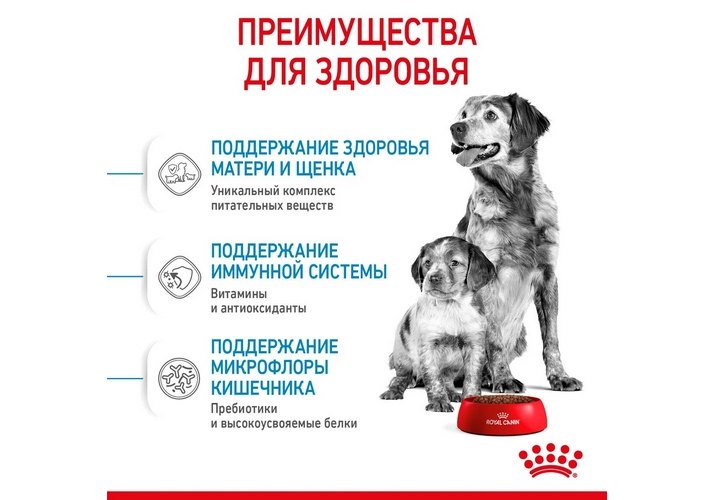Формула ROYAL CANIN® Medium Starter Mother&Babydog удовлетворяет энергетические потребности собаки средних размеров с 42-го дня беременности и в течение всего периода лактации, а также потребности щенков до 2-х месяцев.