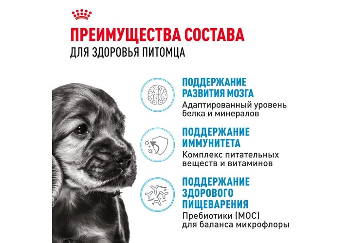 Формула сухого продукта ROYAL CANIN® Mini Puppy (МИНИ ПАППИ) поддерживает иммунную систему, микрофлору кишечника, развитие мозга.