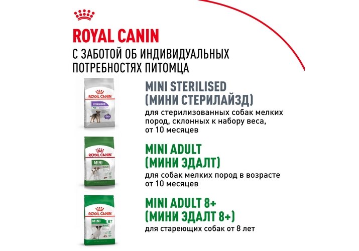 В возрасте 10 месяцев период роста подойдет к завершению, и потребности вашего щенка в питательных веществах изменятся. Ему будет необходим другой рацион, разработанный специально для взрослых собак мелких размеров. В этом возрасте вы сможете перевести своего щенка на корм ROYAL CANIN® Mini Adult (МИНИ ЭДАЛТ).