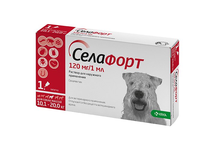 Krka Селафорт Капли на холку для собак весом от 10,1 до 20кг от Внешних и внутренних паразитов 120мг 1 пипетка