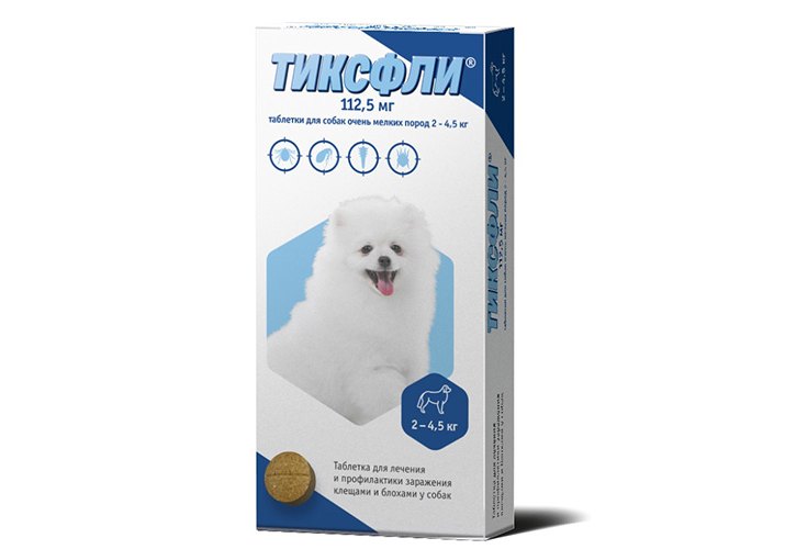 Тиксфли Таблетки от блох и клещей для собак очень мелких пород 2-4,5кг 112,5 мг 1 таб